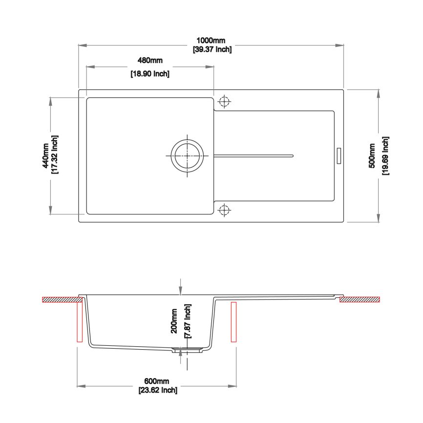 - Mounting: Above Counter